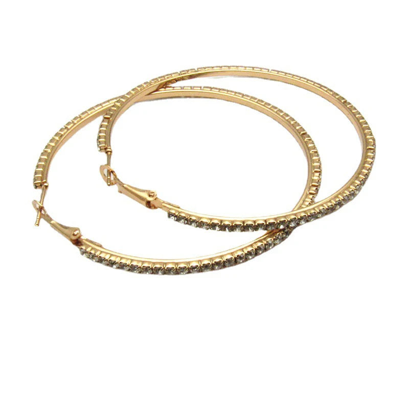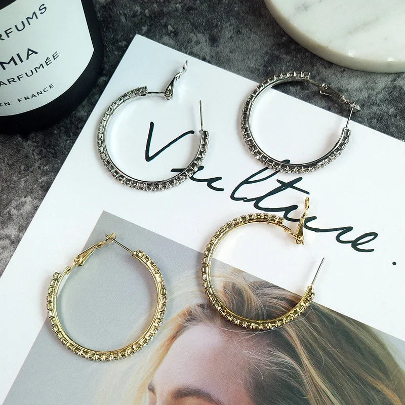 30-80mm Big Hoop Earrings For Women Girls Circle Crystal Rhinestone Earrings Black Gold Silver Color Round Earrings Gift
