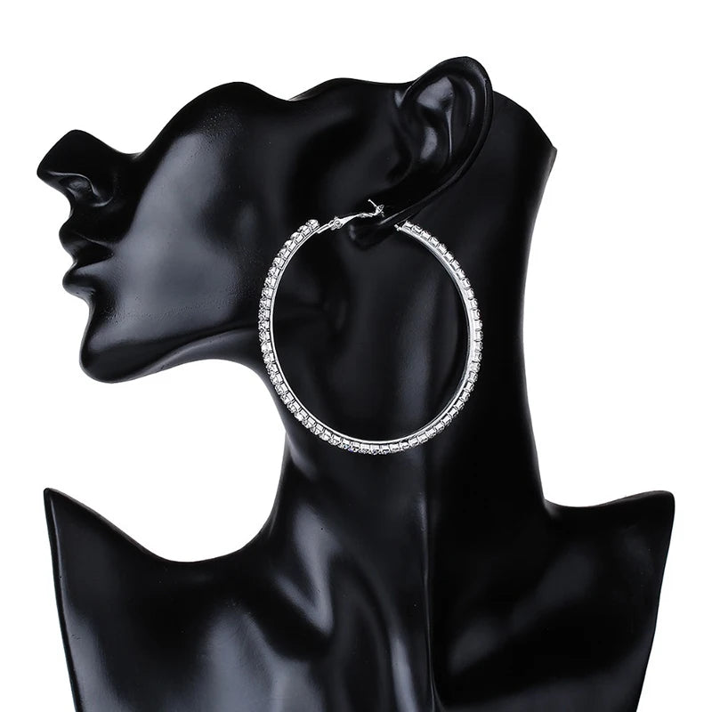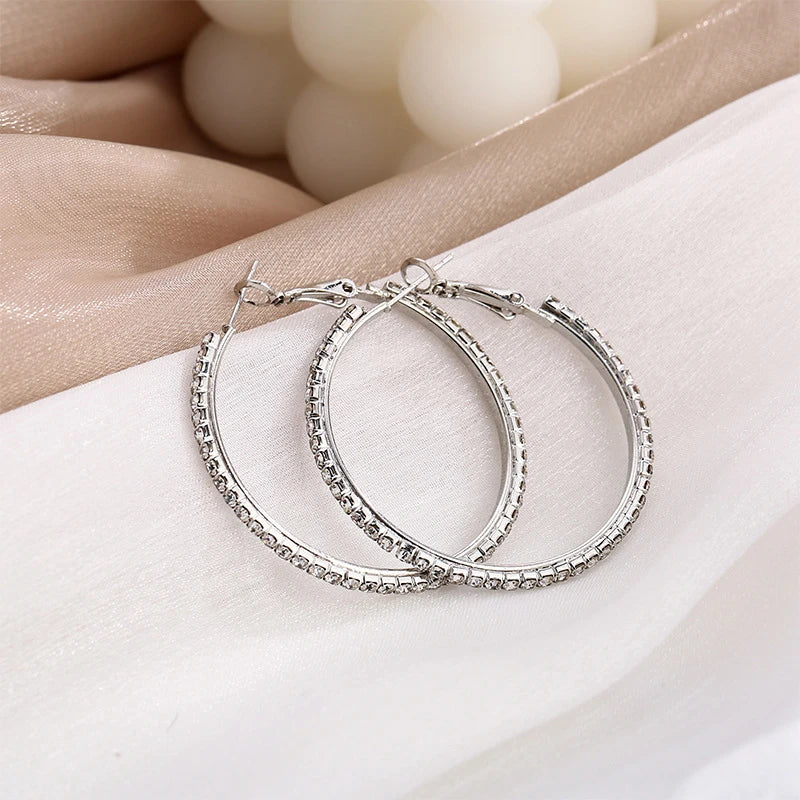 30-80mm Big Hoop Earrings For Women Girls Circle Crystal Rhinestone Earrings Black Gold Silver Color Round Earrings Party Gift