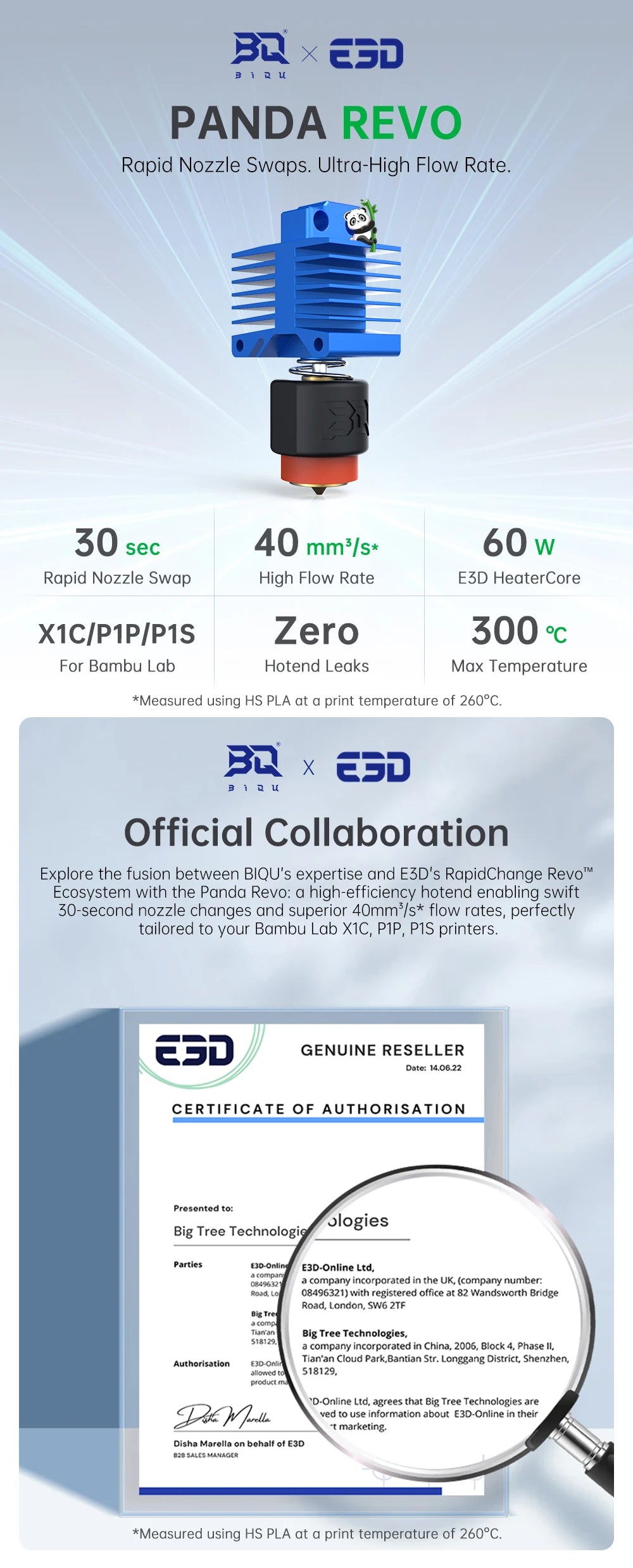 Upgrade your Bambu Lab printer with the BIQU Panda Revo™ Hotend, the ultimate fusion of BIQU engineering and E3D’s RapidChange Revo™ ecosystem. Designed for performance, convenience, and speed, this drop-in hotend delivers blazing-fast nozzle swaps, high flow printing, and leak-free reliability.