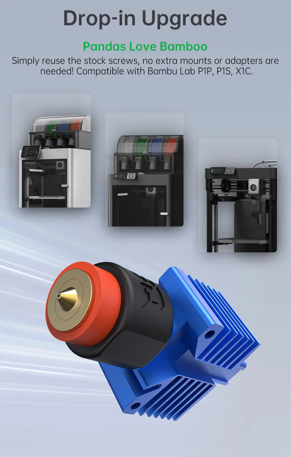 🧩 Drop-In Upgrade – Fully compatible with Bambu Lab P1P, P1S, and X1C printers—no extra mounts or mods required
