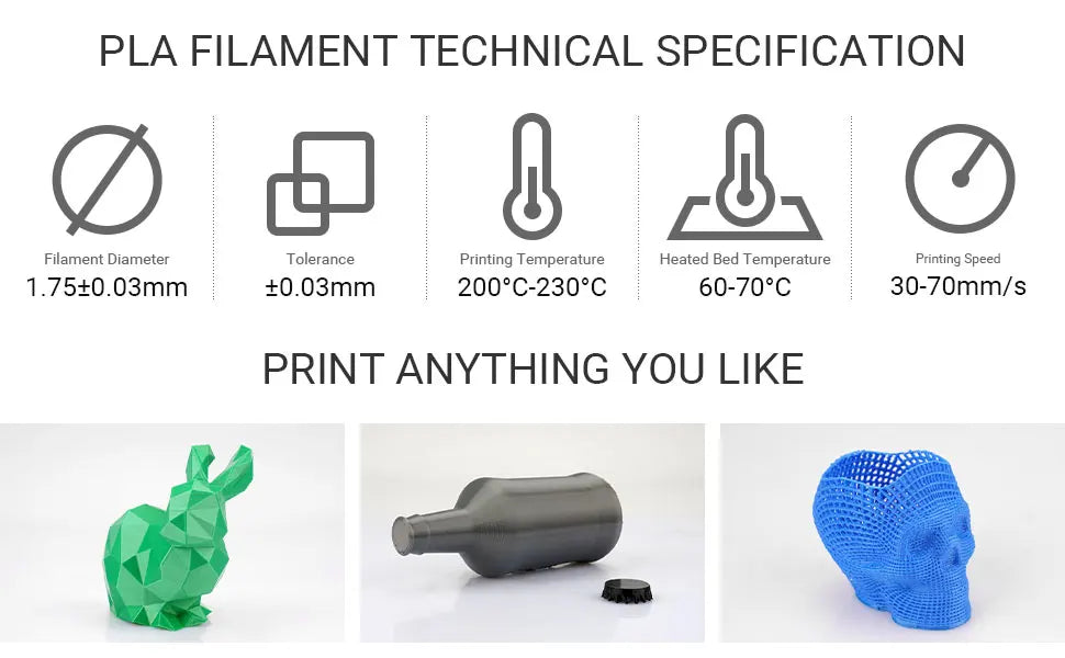 ✅ Wide Compatibility: Optimized for most FDM 3D printers with a recommended temperature range of 200–230°C and a print speed range of 40–60mm/s.