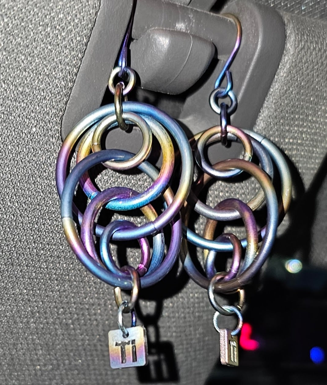 Lightweight, hypoallergenic, and bursting with vibrant color—these Rainbowed Titanium earrings bring the shimmer and the strength. Each piece is hand-assembled in our chaos-fueled family workshop, blending love, metal, and just a little madness.