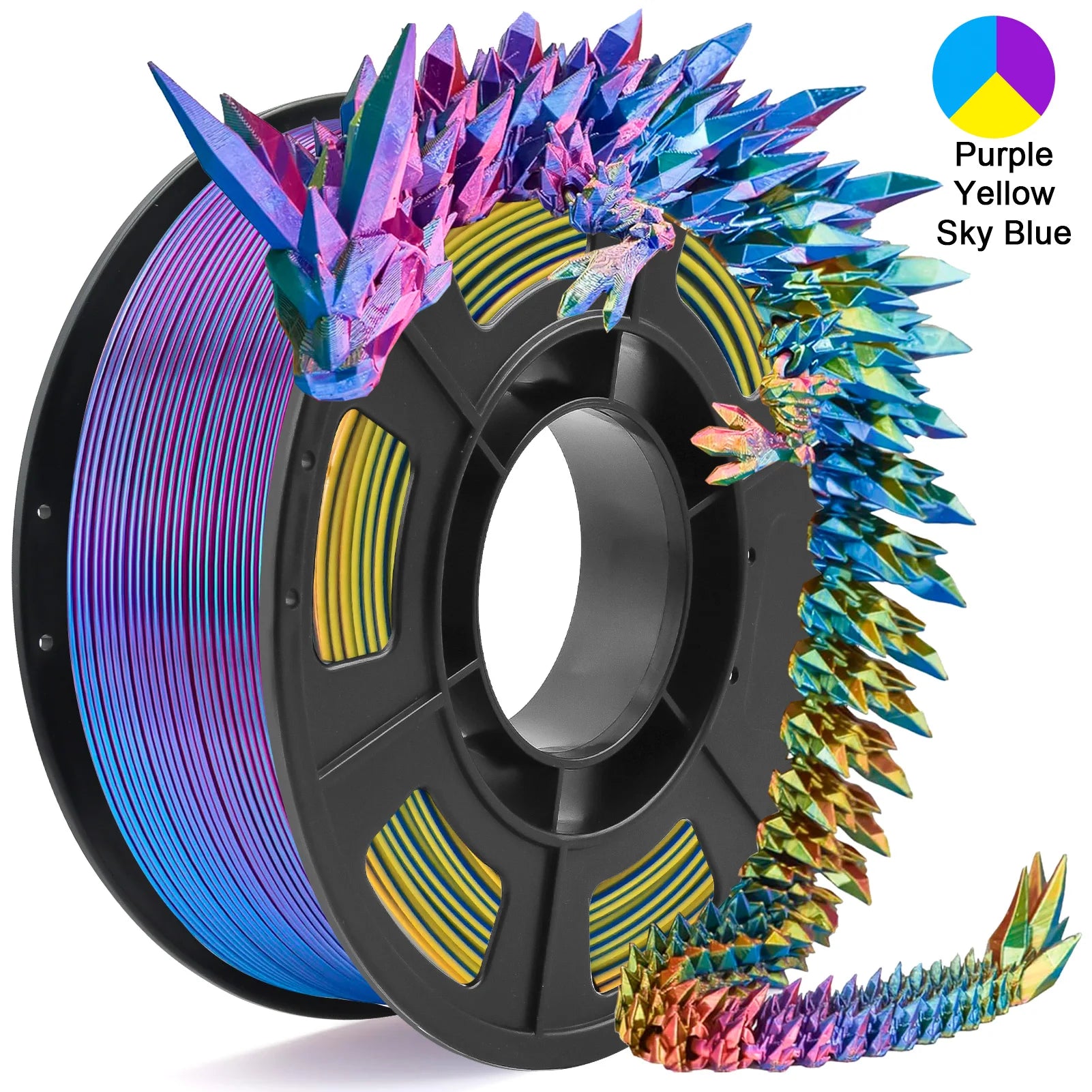 Tricolor Silk PLA 3D Printer Filament, 1.75mm Multicolor 3D Printing Filament, Purple/Sky Blue/Yellow Filament, 250g (0.55lbs)